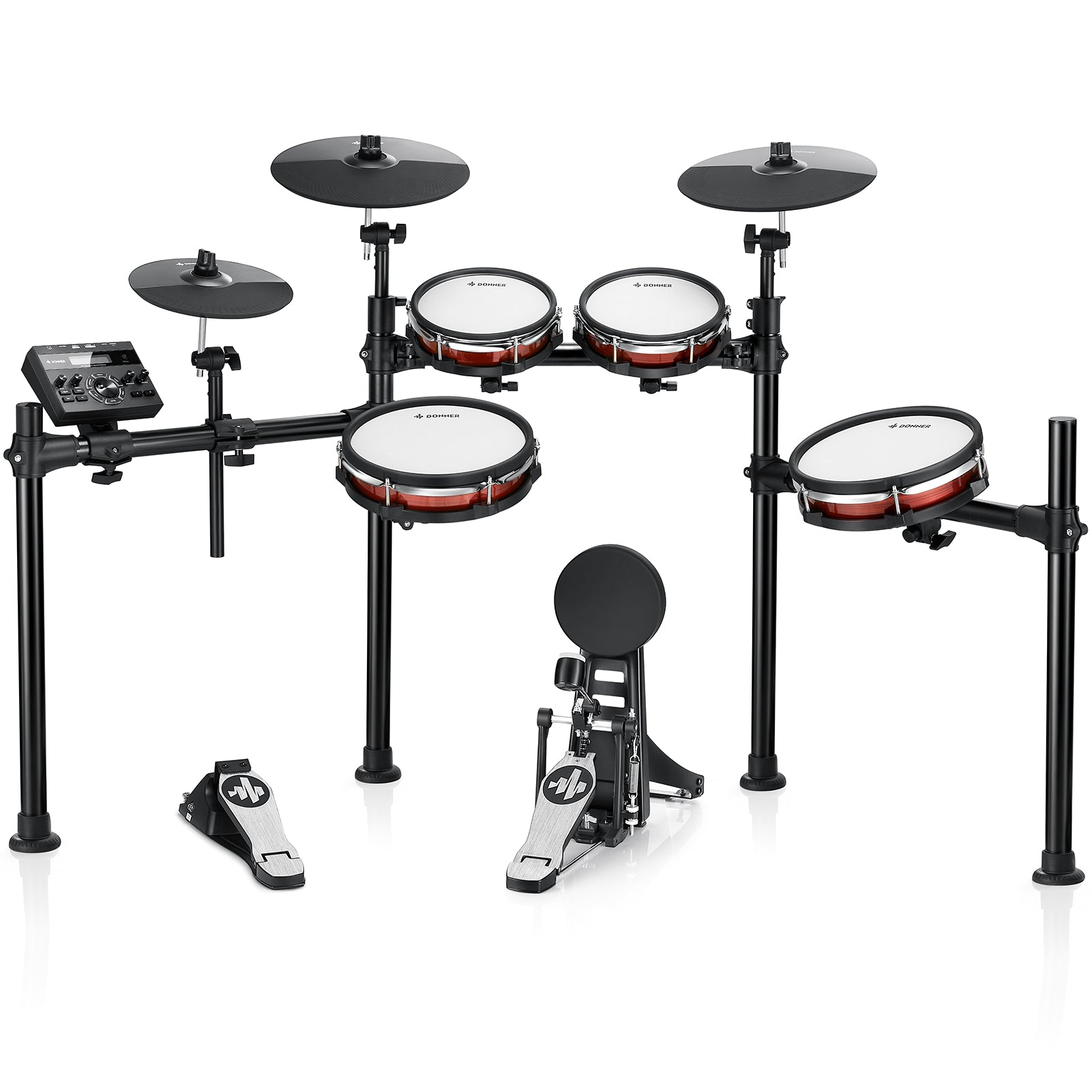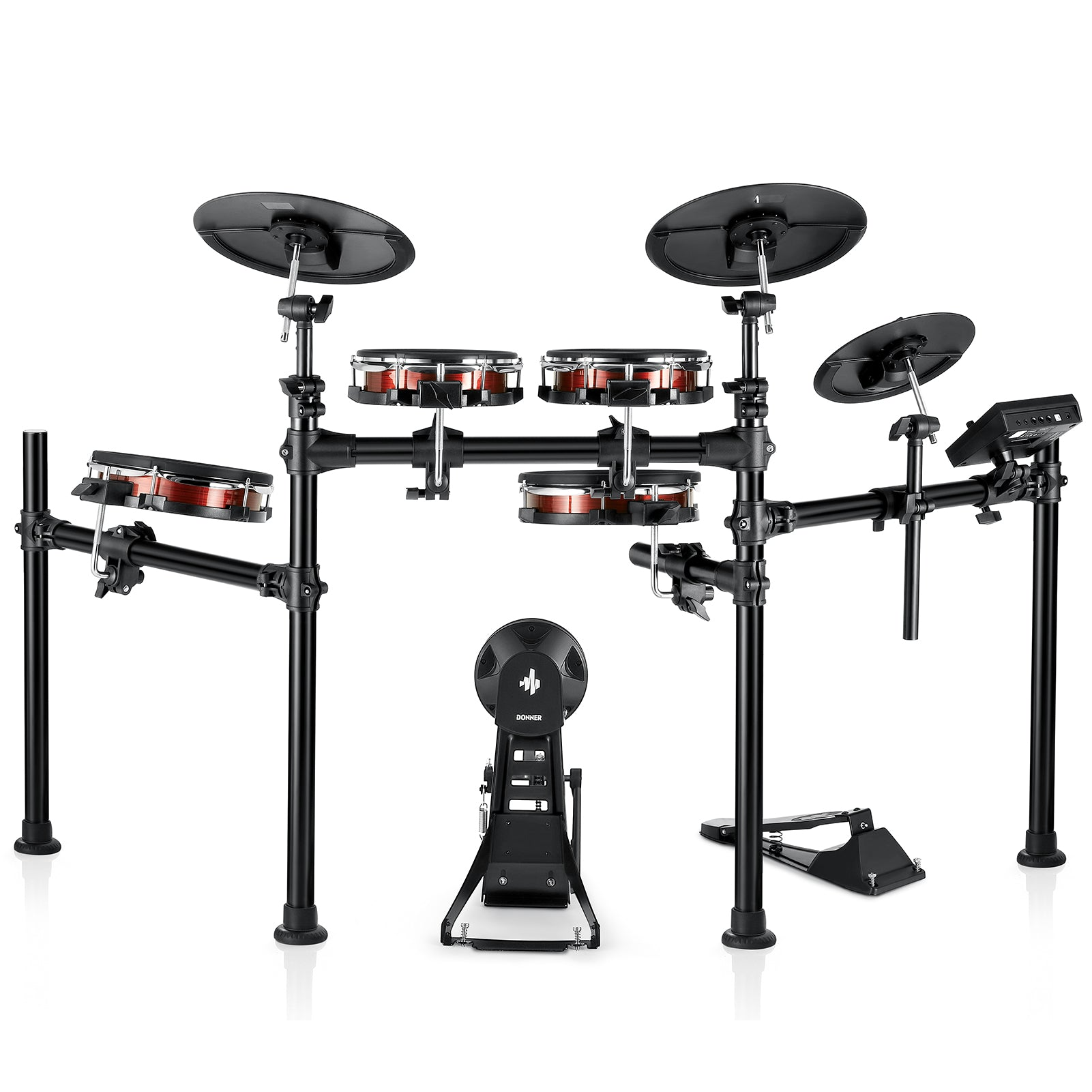 Tres toms de malla de 8» y tom de suelo adicional de 10» para una superficie de interpretación ampliada