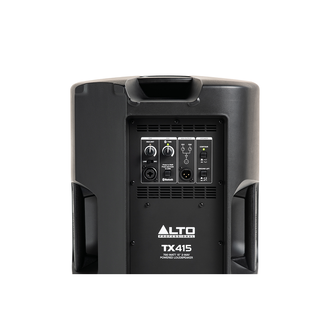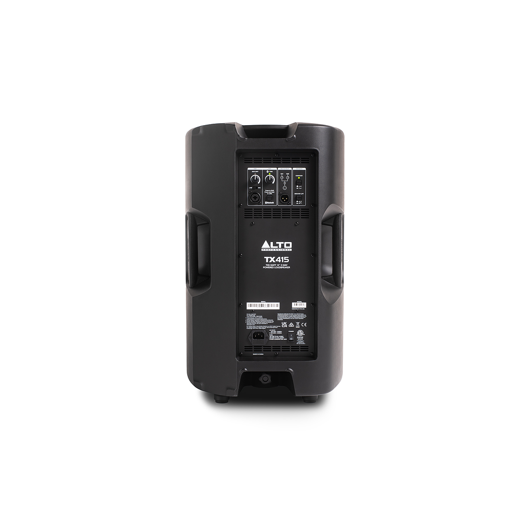 Construido con una robusta carcasa y rejilla metálica, el TX415 combina durabilidad con portabilidad gracias a su diseño ligero y asas ergonómicas. Su panel trasero intuitivo facilita la configuración y el control del sonido sin complicaciones.