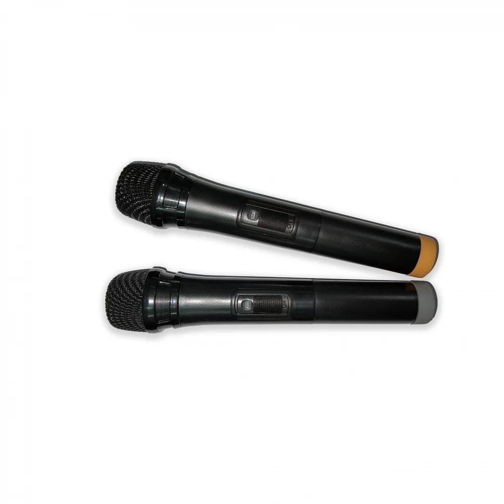 Incluye dos micrófonos inalámbricos que trabajan con 2 pilas AA