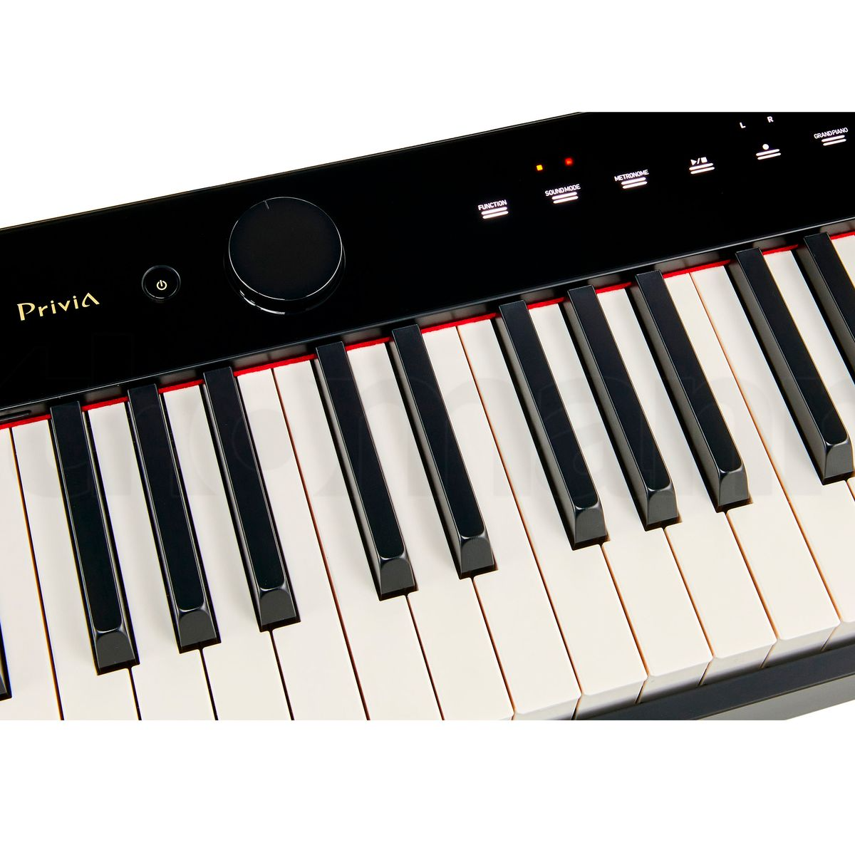 El Privia PX-S5000 incorpora el mismo teclado con acción de martillo híbrido, inteligente, heredado de los modelos superiores. Tiene un diseño delgado y elegante con una percepción de lujo. Ideal para quienes buscan un piano que ofrezca un sonido auténtico y una sensación de un piano de cola, junto con un aspecto moderno y definido.