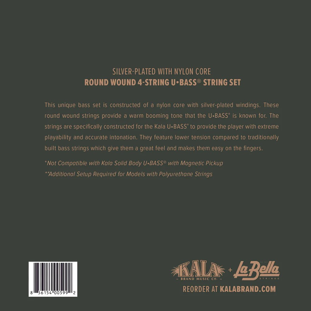 Set 4 Cuerdas Kala Metal Round Wound U-Bass, Disponible en juegos de 4 cuerdas, las cuerdas Kala Metal Round Wound ofrecen la sensación U • Bass de las cuerdas metálicas. Entonación precisa, tono cálido y en auge y menor tensión, todo a un precio súper asequible como alternativa a las cuerdas Pyramid Metal Wound.