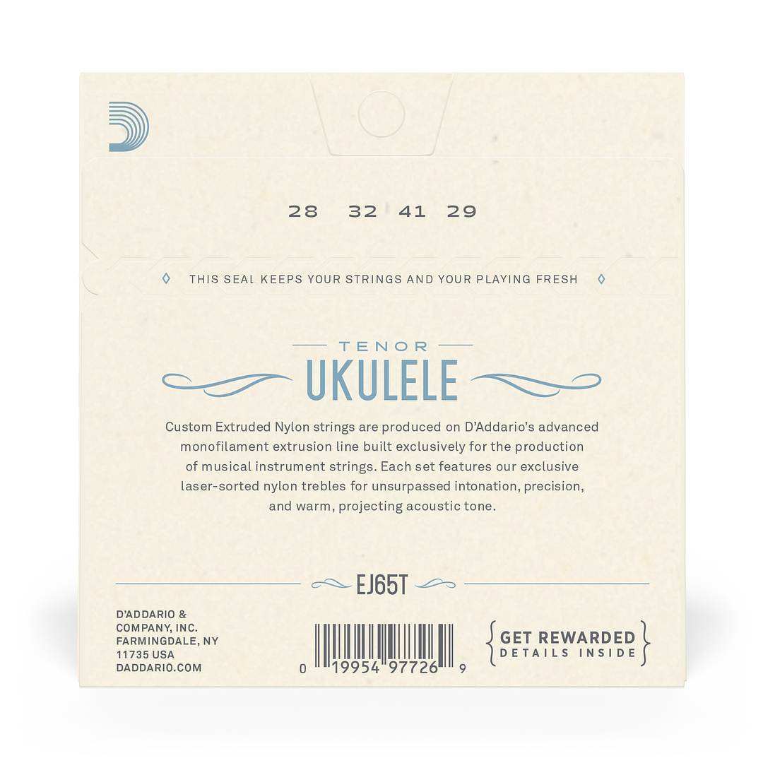 Los juegos para ukelele tenor EJ65T son de nailon inspirados y dirigidos por la virtuosidad del ukelelista de D’Addario Jake Shimabukuro. Cada cuerda está fabricada en la línea de extrusión monofilamento avanzada propia de D’Addario, construida en exclusiva para la producción de cuerdas para instrumentos musicales.