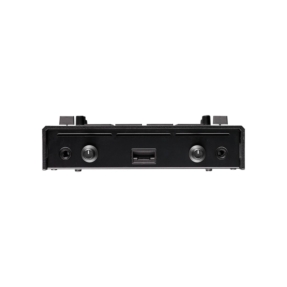 Alimentado por USB-C y equipado con una amplia conectividad integrada, KAOSS Replay ofrece una configuración rápida y sin esfuerzo, lo que te permite realizar actuaciones sin estrés y sin la molestia de tener que realizar ajustes complicados y confusos, independientemente de tu ubicación.